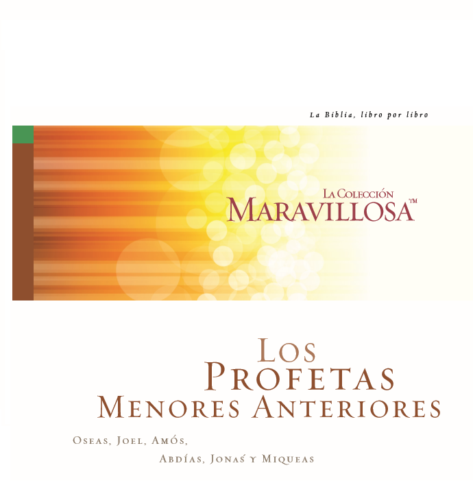 Los profetas menores anteriores (Oseas – Miqueas) La visión de Oseas del amor de Dios por su pueblo adúltero simbolizado por el amor del profeta por su esposa adúltera; la descripción de Jonás de sí mismo como un profeta desobediente y fugitivo, perseguido por un Dios paciente; las visiones coloridas de Amós sobre el juicio de Dios que vendría por su continua desobediencia; y el retrato clásico del orgullo de Abdías.Tanto hoy como en esos tiempos, podemos elegir la obedencia y bendición o la rebelión y separación. (volumen 6, libro de trabajo)